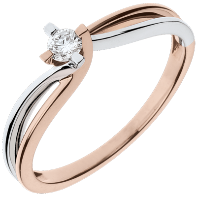 Pierścionek Drogocenne Gniazdo - Klara - diament 0,11 karata - złoto białe i złoto różowe 18-karatowe