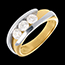 Jego klasyczna i stonowana forma podkreśla trilogię trzech diamentów o łącznej masie 0,765 ct i jakości H-I, zapewniając naturalny blask.
