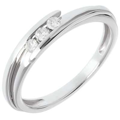 Pierścionek Drogocenne Gniazdo z potrójnym diamentem - Z zachodzącymi na siebie ramionami - złoto białe 18-karatowe - 3 diamenty