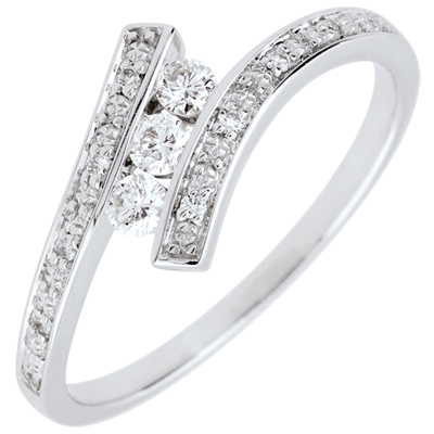 Pierścionek Drogocenne Gniazdo z trzema diamentami - Elyssa - złoto białe 9-karatowe