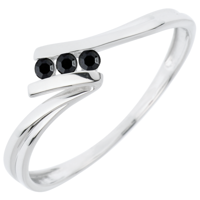 Pierścionek Drogocenne Gniazdo z trzema diamentami - Euforia - złoto białe 18-karatowe - czarne diamenty