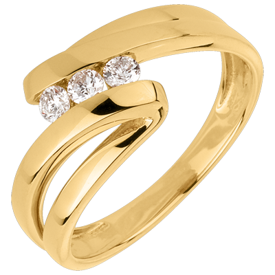 Pierścionek Drogocenne Gniazdo z trzema diamentami - Najada - złoto żółte 18-karatowe - 3 diamenty