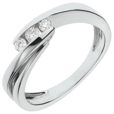 Pierścionek Drogocenne Gniazdo z trzema diamentami - Refren - złoto białe 18-karatowe - 3 diamenty