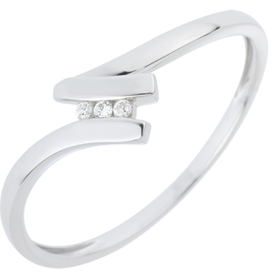 Pierścionek Drogocenne Gniazdo z trzema diamentami - Serena - złoto białe 18-karatowe