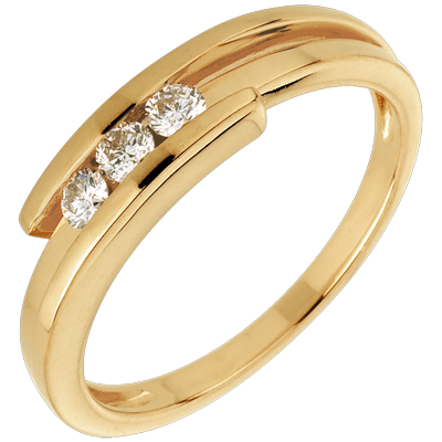 Pierścionek Drogocenne Gniazdo z trzema diamentami - Z zachodzącymi na siebie ramionami - złoto żółte 18-karatowe - 0,17 karata