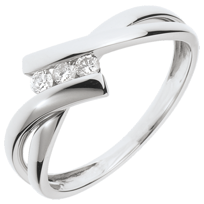 Pierścionek Drogocenne Gniazdo z trzema diamentami - złoto białe 18-karatowe - 3 diamenty