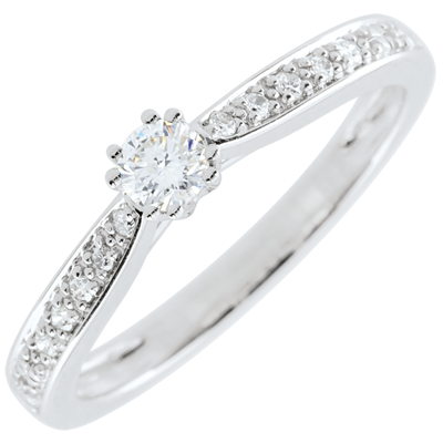 Pierścionek Garlane z jednym diamentem oprawionym w 8 krap - 0,15 karata - złoto białe 9-karatowe