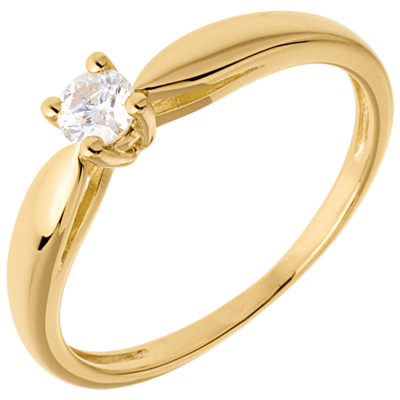 Pierścionek w kształcie trzciny z żółtego złota 18-karatowego z jednym diamentem - 0,16 karata