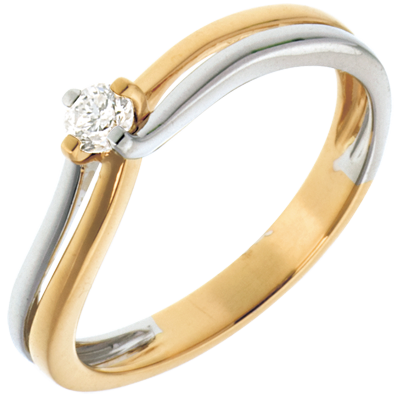 Pierścionek Linia z białego i żółtego złota 18-karatowego z jednym diamentem