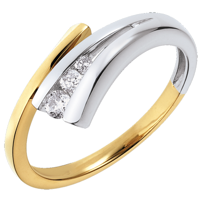 Pierścionek Narval z potrójnym diamentem - 3 diamenty - złoto białe i złoto żółte 18-karatowe