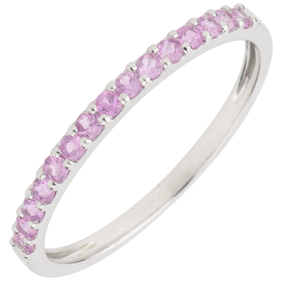 Pierścionek Rajski Ptak - jeden rząd - złoto białe 9-karatowe i różowy szafir