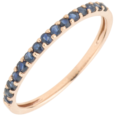 Pierścionek Rajski Ptak - jeden rząd - złoto różowe 9-karatowe i niebieski szafir