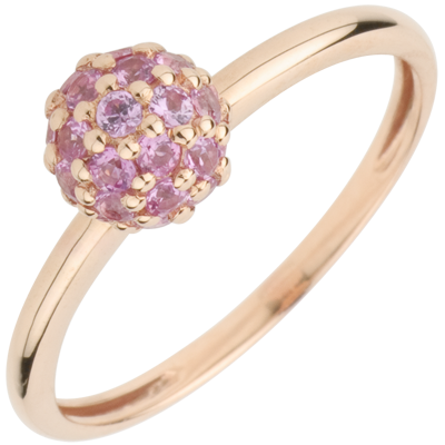 Pierścionek Rajski Ptak - kula - złoto różowe 9-karatowe i różowy szafir