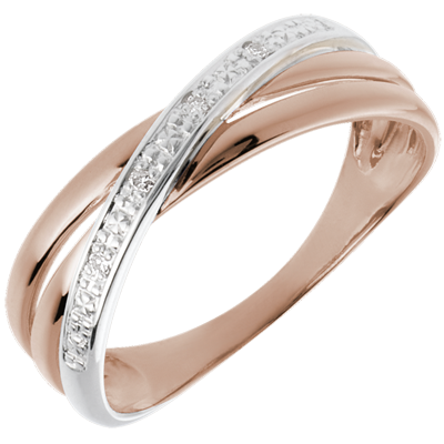 Pierścionek Saturn Duo wariacja - 4 diamenty - złoto białe i złoto różowe 18-karatowe