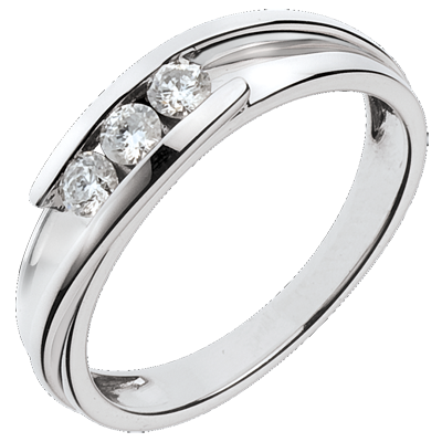 Pierścionek z trzema diamentami i zachodzącymi na siebie ramionami z białego złota 18-karatowego - 0,24 karata - 3 diamenty