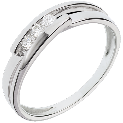 Pierścionek z trzema diamentami i zachodzącymi na siebie ramionami z białego złota 18-karatowego - 3 diamenty
