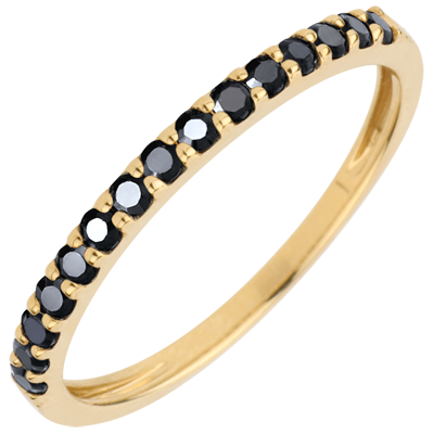 Pierścionek Rajski Ptak - jeden rząd - złoto żółte 9-karatowe i czarne diamenty