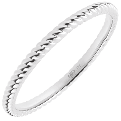 Obrączka w kształcie złotej liny uzupełniająca pierścionek zaręczynowy w tym samym stylu, z liną w innym kolorze złota, lub z innymi obrączkami z motywami.
