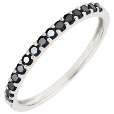 Pierścionek Rajski Ptak - jeden rząd - złoto białe 9-karatowe i czarne diamenty