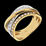 Połączone obrączki z żółtego i białego złota harmonijnie przeplatają się, elegancko łapiąc światło i oferując subtelny, wyrafinowany blask. Kreacja łącząca nowoczesność z wyrafinowaniem w cennym klejnocie.