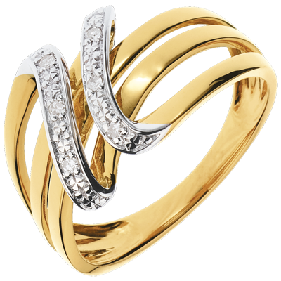 Pierścionek Klucz Altowy - 6 diamentów - złoto białe i złoto żółte 18-karatowe