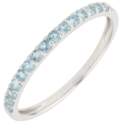 Pierścionek Rajski Ptak - jeden rząd - złoto białe 9-karatowe i niebieski topaz
