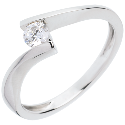 Pierścionek Drogocenne Gniazdo z jednym diamentem - Apostrof - złoto białe 18-karatowe - diament 0,2 karata