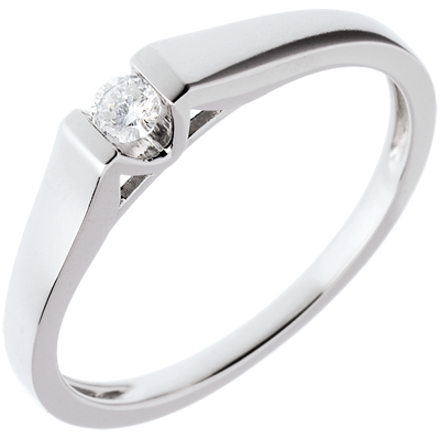 Pierścionek w kształcie łuku z białego złota 18-karatowego z jednym diamentem