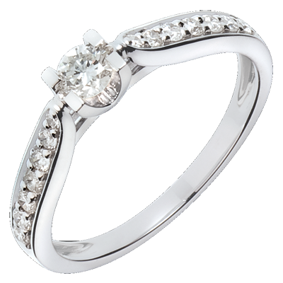 Pierścionek zaręczynowy Hrabina z jednym diamentem - diament 0,18 karata - złoto białe 18-karatowe