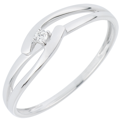Pierścionek Drogocenne Gniazdo z jednym diamentem - Biały Związek - złoto białe 18-karatowe