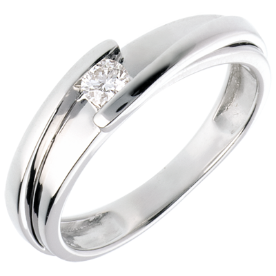 Pierścionek Drogocenne Gniazdo z jednym diamentem - Z zachodzącymi na siebie ramionami - złoto białe 18-karatowe - diament 0,13