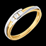 Pierścionek waży co najmniej 2,6 grama złota 18 karat, łącząc złoto białe i żółte.