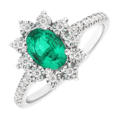 PONADCZASOWA SZAROTKA NR 4Pierścionek Kwiaty - Białe złoto 750 - Szmaragd ID : 1621