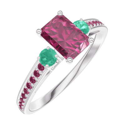 « L'ATELIER » NR 1001950Pierścionek Białe złoto 375 - Syntetyczny rubin Prostokąt 0.5 karat - Kamienie boczne Szmaragd - Oprawa Rubin