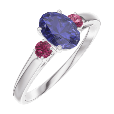 « L'ATELIER » NR 1002469Pierścionek Białe złoto 750 - Syntetyczny szafir Owal 0.5 karat - Kamienie boczne Rubin