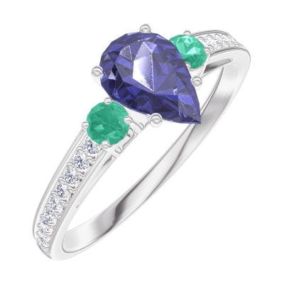 « L'ATELIER » Nº1002586Pierścionek Białe złoto 375 - Syntetyczny szafir Gruszka 0.5 karat - Kamienie boczne Szmaragd - Oprawa Diament laboratoryjny