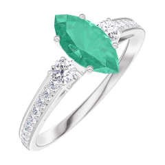 Pierścionek Białe złoto 375 - Syntetyczny szmaragd Markiza 0.5 karat - Kamienie boczne Diament laboratoryjny - Oprawa Diament laboratoryjny