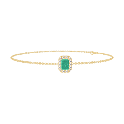 « L'ATELIER » Nº1012683Bransoletka Żółte złoto 750 - Syntetyczny szmaragd Prostokąt 0.3 karat - Korona z kamieni Diament laboratoryjny - Łańcuszek Łańcuszek ankier