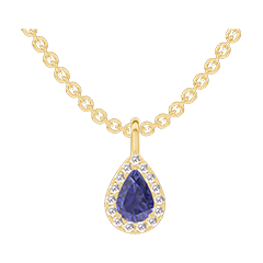 « L'ATELIER » NR 1015651Zawieszka Żółte złoto 750 - Syntetyczny szafir Gruszka 0.3 karat - Korona z kamieni Diament laboratoryjny - Łańcuszek Łańcuszek ankier