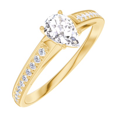 « L'ATELIER » NR 160405Pierścionek Żółte złoto 750 - Diament Gruszka 0.3 karat - Oprawa Diament