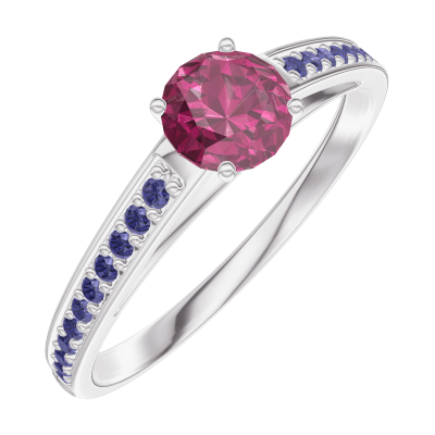 « L'ATELIER » NR 160615Pierścionek Białe złoto 750 - Rubin okrągły 0.3 karat - Oprawa Niebieski szafir 4.5