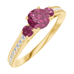 Pierścionek Żółte złoto 750 - Rubin okrągły 0.3 karat - Kamienie boczne Rubin - Oprawa Diament