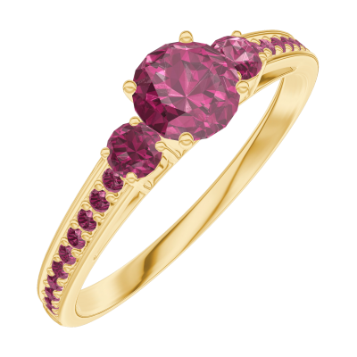 « L'ATELIER » NR 160650Pierścionek Żółte złoto 375 - Rubin okrągły 0.3 karat - Kamienie boczne Rubin - Oprawa Rubin 4.5