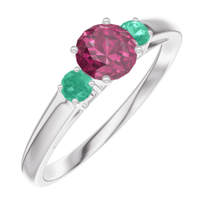« L'ATELIER » NR 160684Pierścionek Białe złoto 375 - Rubin okrągły 0.3 karat - Kamienie boczne Szmaragd 4.5