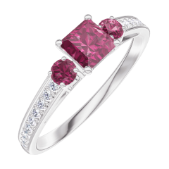 Pierścionek Białe złoto 750 - Rubin „Księżniczka” 0.3 karat - Kamienie boczne Rubin - Oprawa Diament