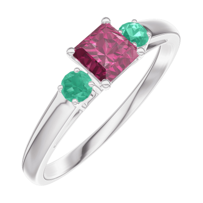 « L'ATELIER » Nº160784Pierścionek Białe złoto 375 - Rubin „Księżniczka” 0.3 karat - Kamienie boczne Szmaragd