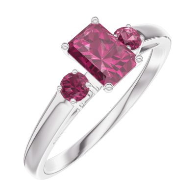 « L'ATELIER » Nº160844Pierścionek Białe złoto 375 - Rubin Prostokąt 0.3 karat - Kamienie boczne Rubin