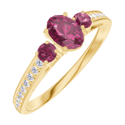 « L'ATELIER » NR 160946Pierścionek Żółte złoto 375 - Rubin Owal 0.3 karat - Kamienie boczne Rubin - Oprawa Diament 5