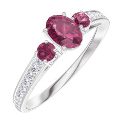 Pierścionek Białe złoto 750 - Rubin Owal 0.3 karat - Kamienie boczne Rubin - Oprawa Diament