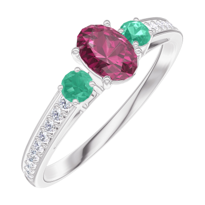 « L'ATELIER » Nº160988Pierścionek Białe złoto 375 - Rubin Owal 0.3 karat - Kamienie boczne Szmaragd - Oprawa Diament 5